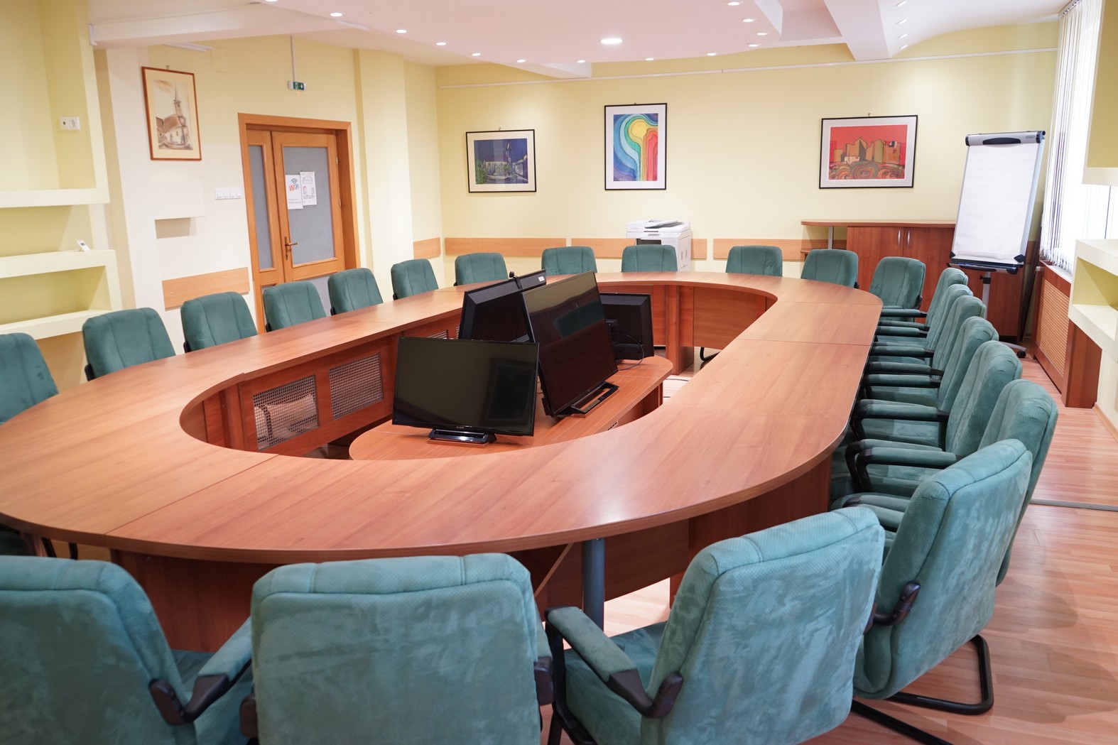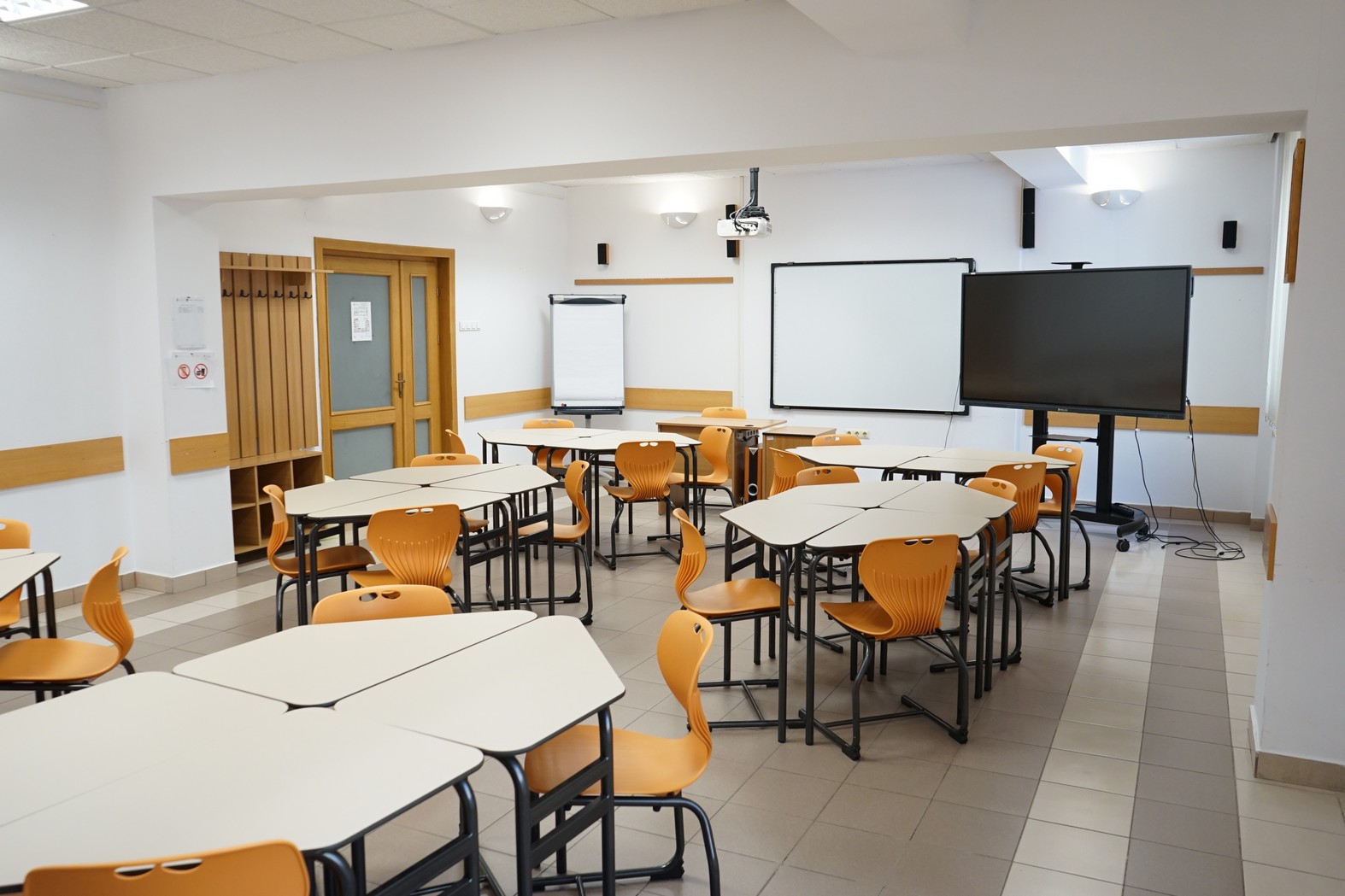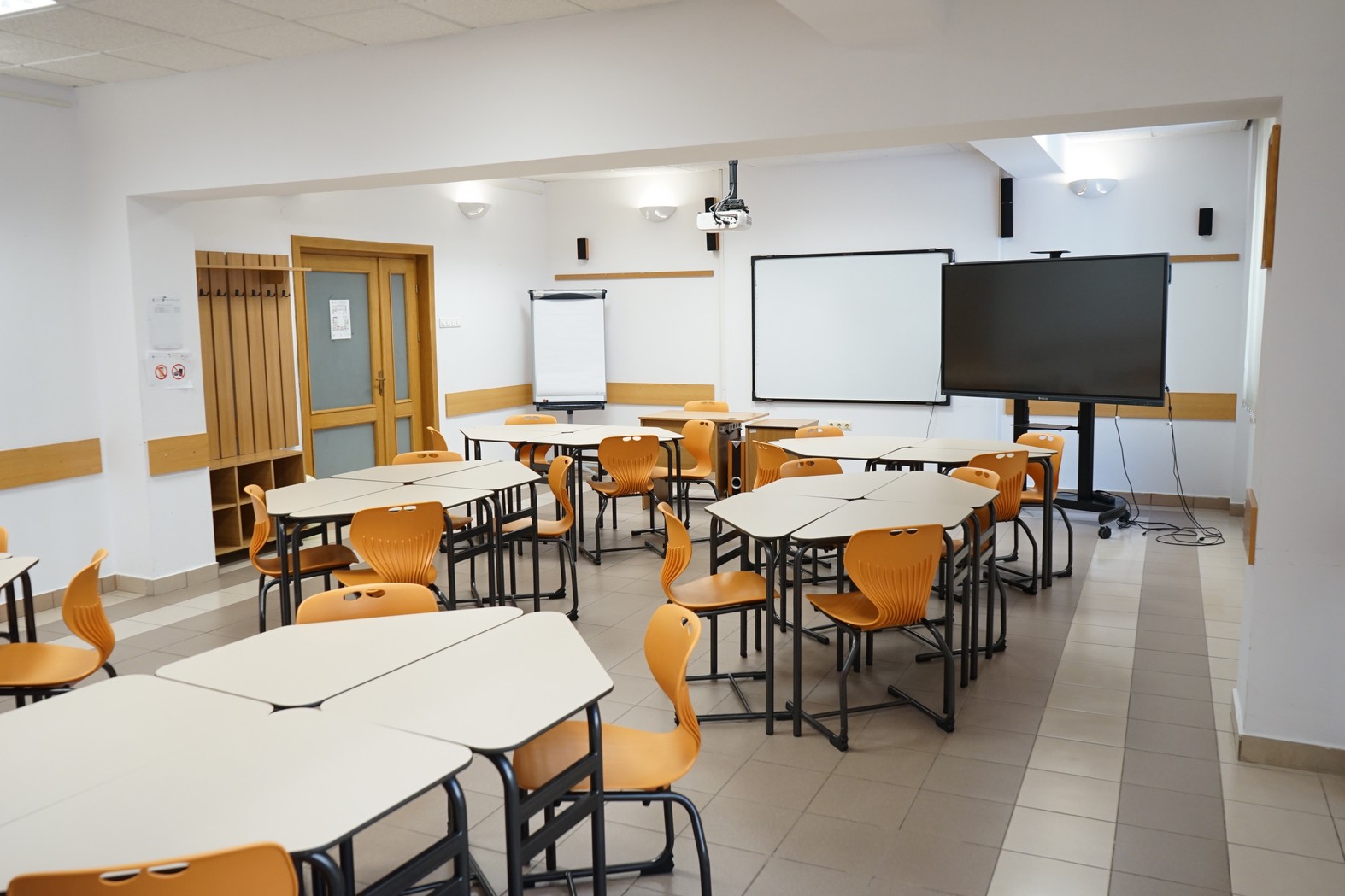 Spațiu modern, conceput pentru activități educaționale și formare profesională. Capacitate de 20–25 de persoane, mobilier flexibil și ecran Helgi 4K pentru prezentări eficiente.