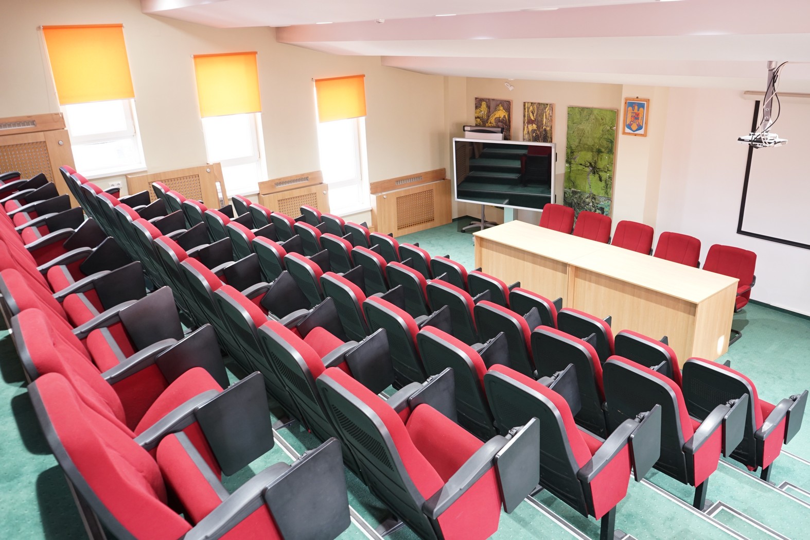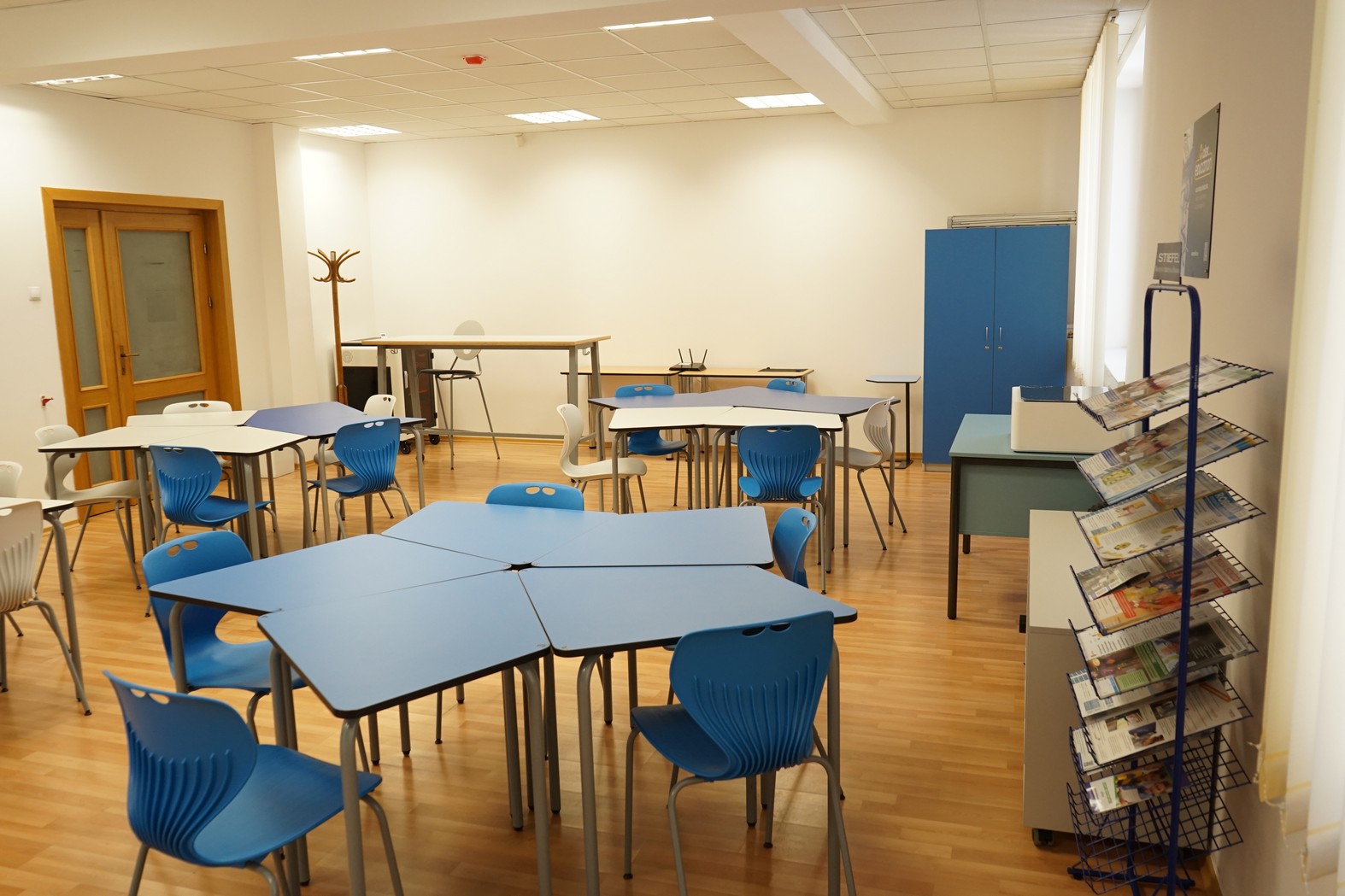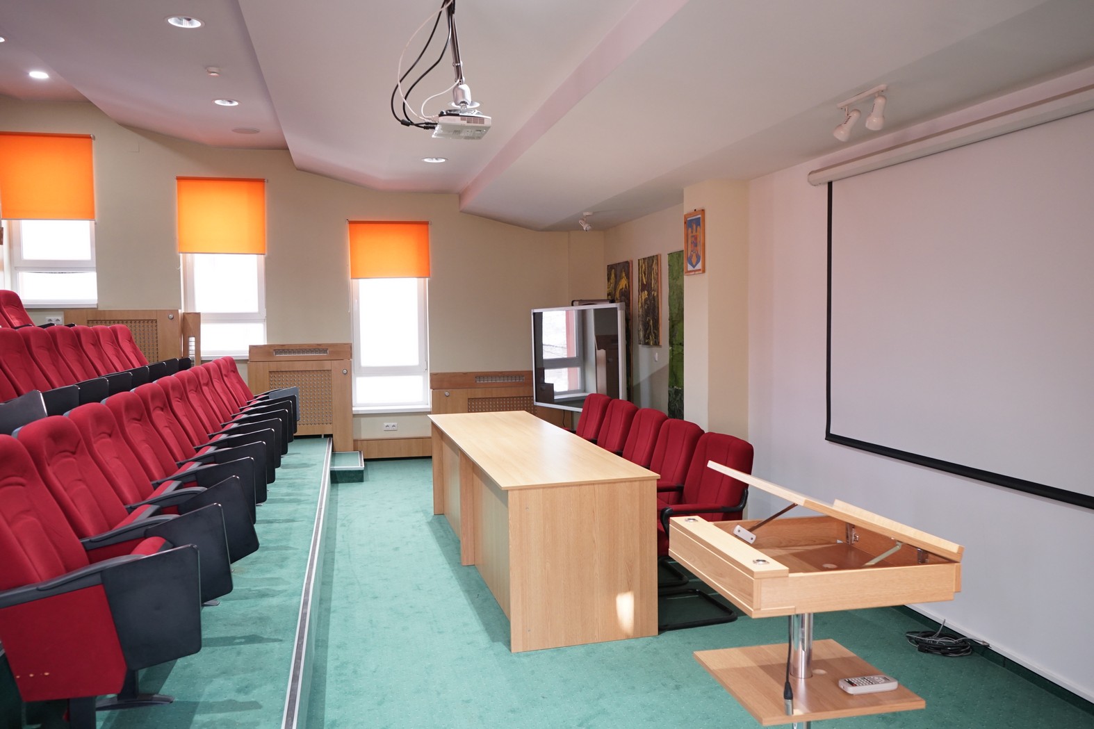 Spațiu modern, conceput pentru activități educaționale și formare profesională. Capacitate de 20–25 de persoane, mobilier flexibil și ecran Helgi 4K pentru prezentări eficiente.