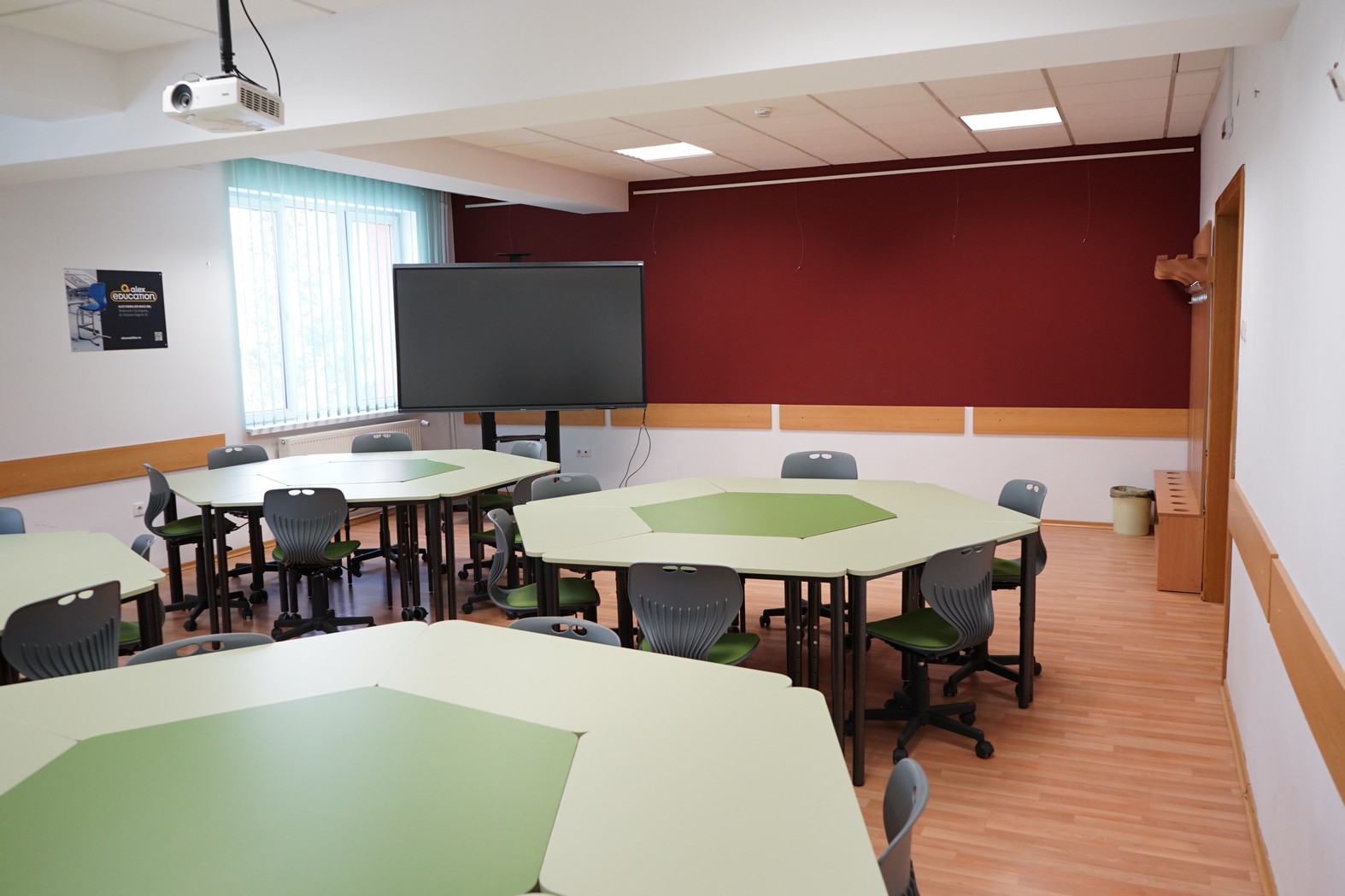 Punctul de întâlnire dintre creativitate și tehnologie. Sala, cu o capacitate de 20–25 de persoane, este dotată cu mobilier modular, ecran Helgi 4K, precum și cu 2 imprimante 3D, fiind ideală pentru cursuri inovative, tehnologice și activități practice.